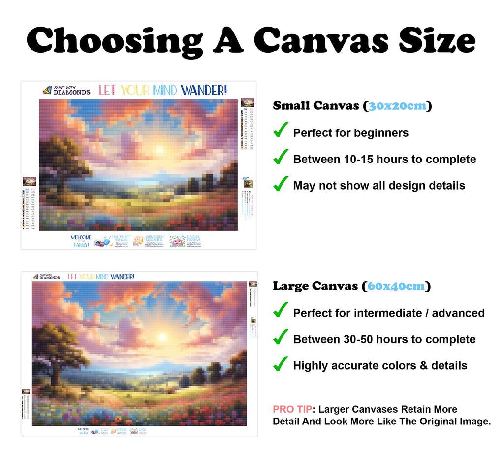 Premium Quality Diamond Painting Kit: Includes a velvety-soft adhesive canvas, eco-friendly shimmering resin diamonds, and a premium toolkit - everything you ned to get started on your next masterpiece.