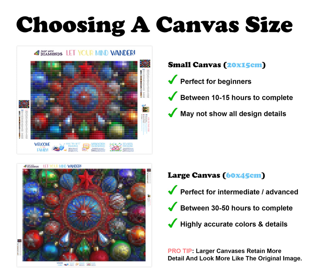 Escape into a world of vibrant colors and creative tranquility with the ‘Christmas Ornament Mandala’ Diamond Painting Kit. This exclusive full-drill design by artist Caleb Smith is available only at Paint With Diamonds. Let your mind unwind as you piece together shimmering diamonds to create a beautiful masterpiece.