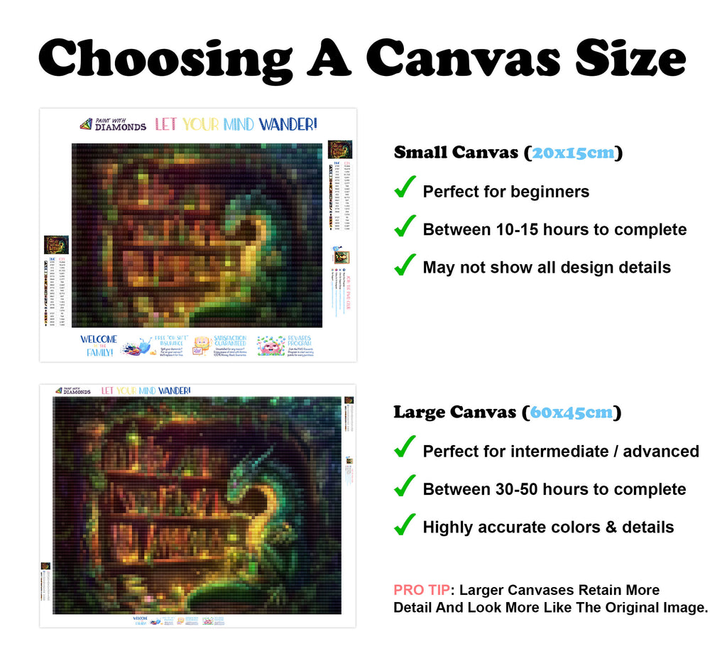 Escape into a world of vibrant colors and creative tranquility with the ‘Dragon’s Secret Library’ Diamond Painting Kit. This exclusive full-drill design by artist Caleb Smith is available only at Paint With Diamonds. Let your mind unwind as you piece together shimmering diamonds to create a beautiful masterpiece.