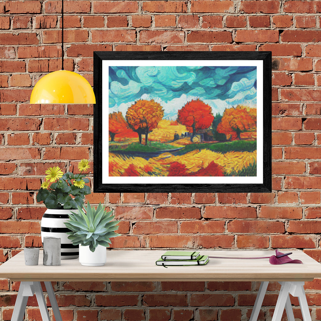 Escape into a world of vibrant colors and creative tranquility with the ‘Autumn By Van Gogh’ Diamond Painting Kit. This exclusive full-drill design by artist Caleb Smith is available only at Paint With Diamonds. Let your mind unwind as you piece together shimmering diamonds to create a beautiful masterpiece.