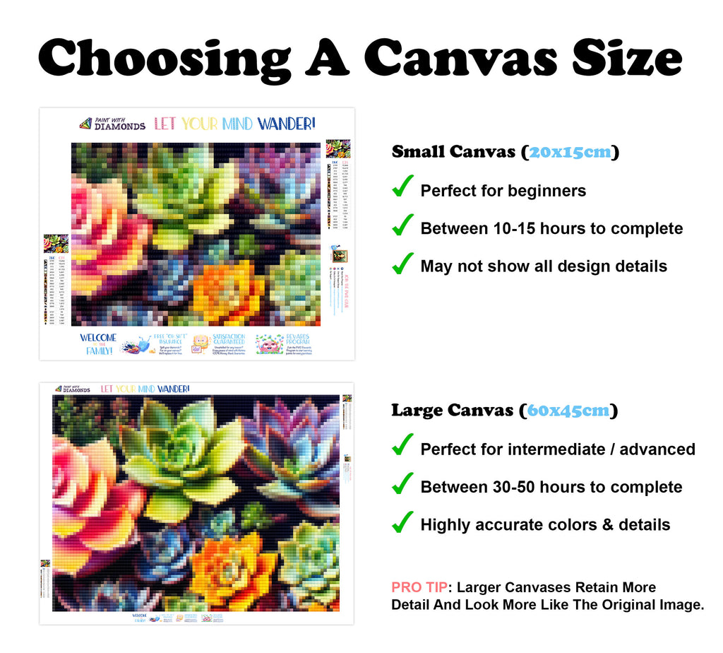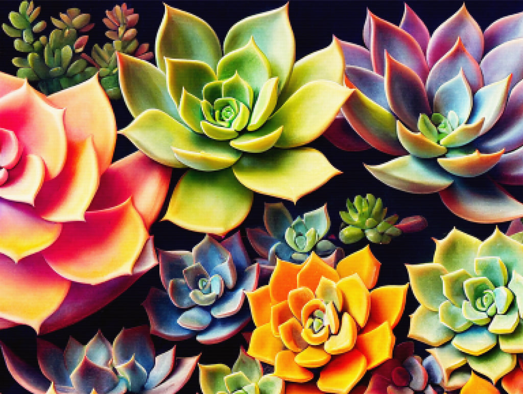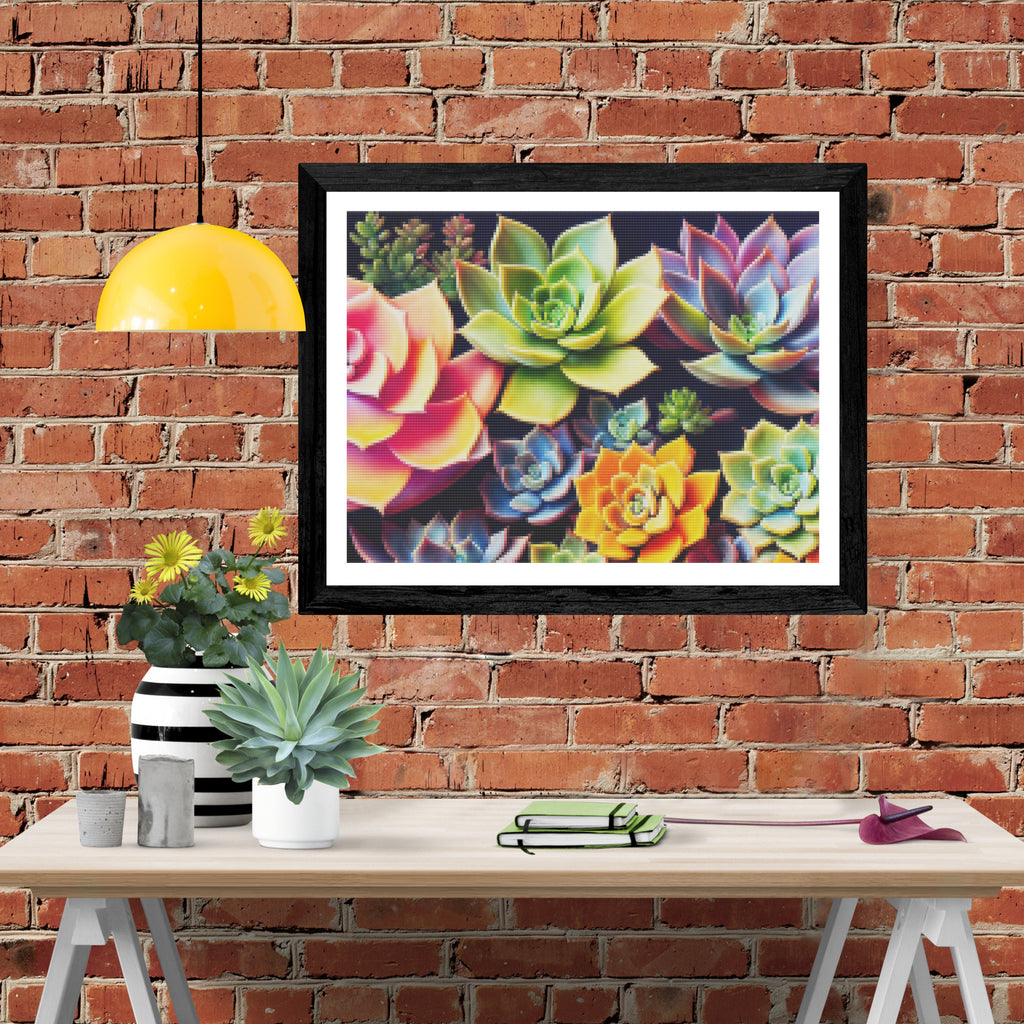 Escape into a world of vibrant colors and creative tranquility with the ‘Beautiful Colorful Succulents’ Diamond Painting Kit. This exclusive full-drill design by artist Caleb Smith is available only at Paint With Diamonds. Let your mind unwind as you piece together shimmering diamonds to create a beautiful masterpiece.