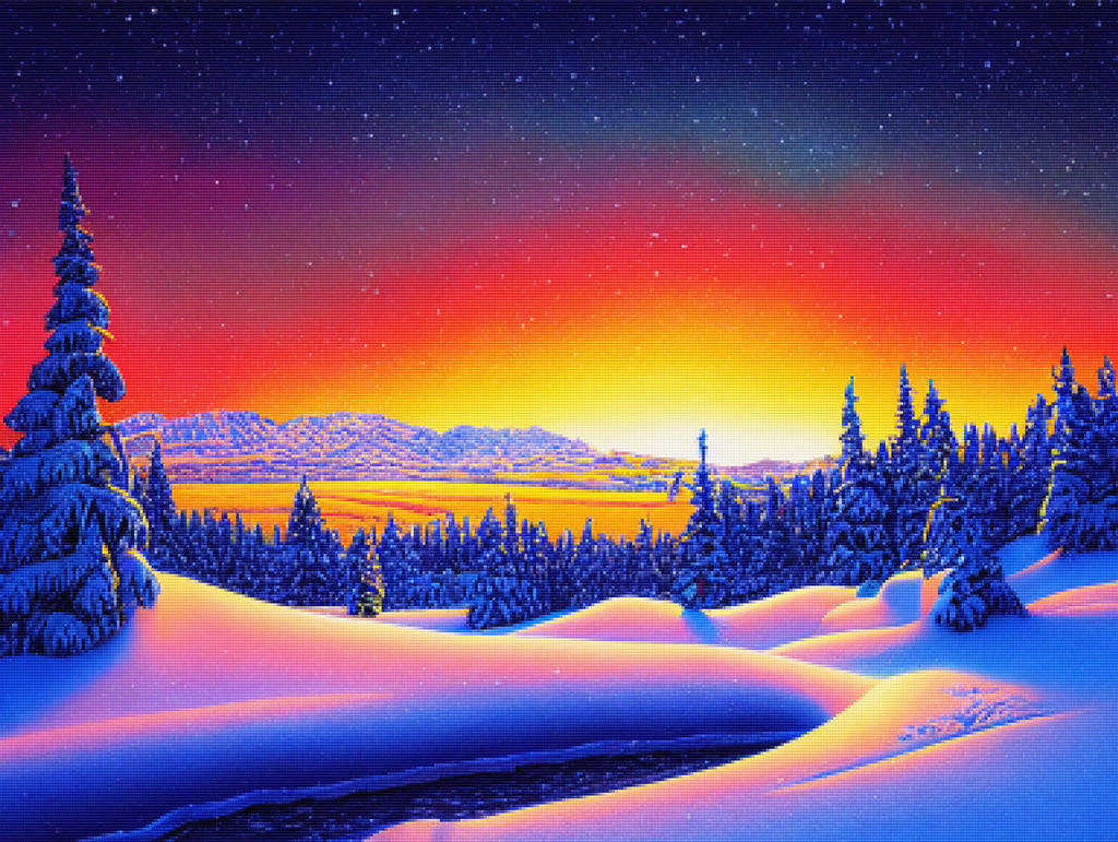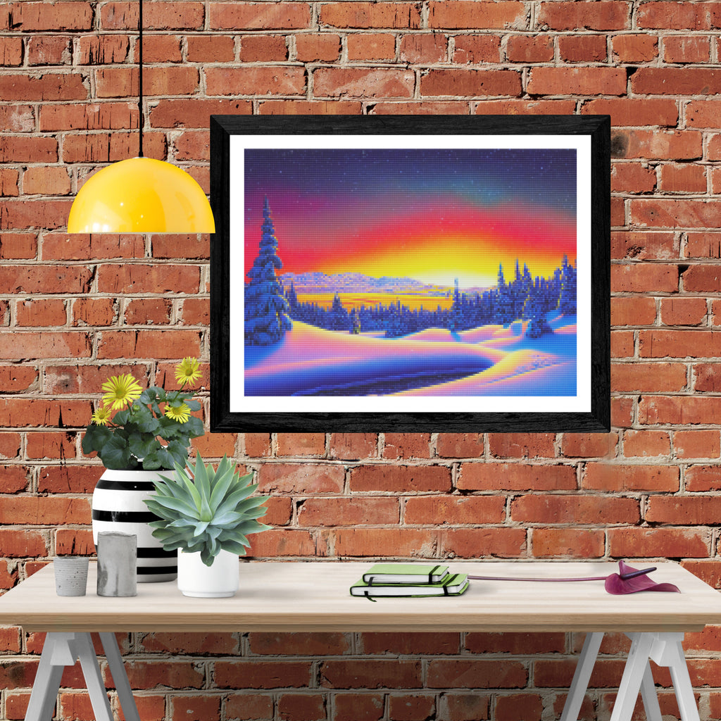 Escape into a world of vibrant colors and creative tranquility with the ‘Beautiful Winter Sunset’ Diamond Painting Kit. This exclusive full-drill design by artist Caleb Smith is available only at Paint With Diamonds. Let your mind unwind as you piece together shimmering diamonds to create a beautiful masterpiece.