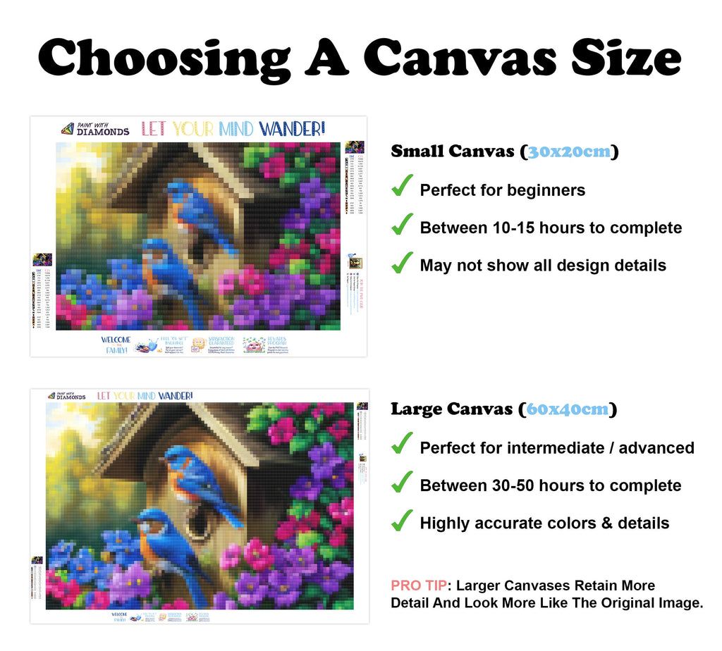 Escape into a world of vibrant colors and creative tranquility with the ‘Bluebirds In The Birdhouse’ Diamond Painting Kit. This exclusive full-drill design by artist Caleb Smith is available only at Paint With Diamonds. Let your mind unwind as you piece together shimmering diamonds to create a beautiful masterpiece.