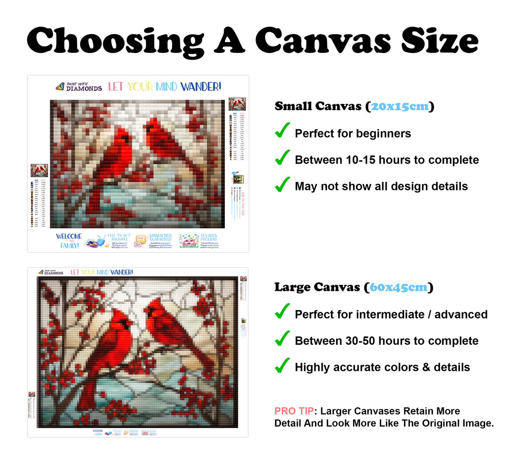 Escape into a world of vibrant colors and creative tranquility with the ‘Bright Red Cardinals Perched on Branches’ Diamond Painting Kit. This exclusive full-drill design by artist Caleb Smith is available only at Paint With Diamonds. Let your mind unwind as you piece together shimmering diamonds to create a beautiful masterpiece.