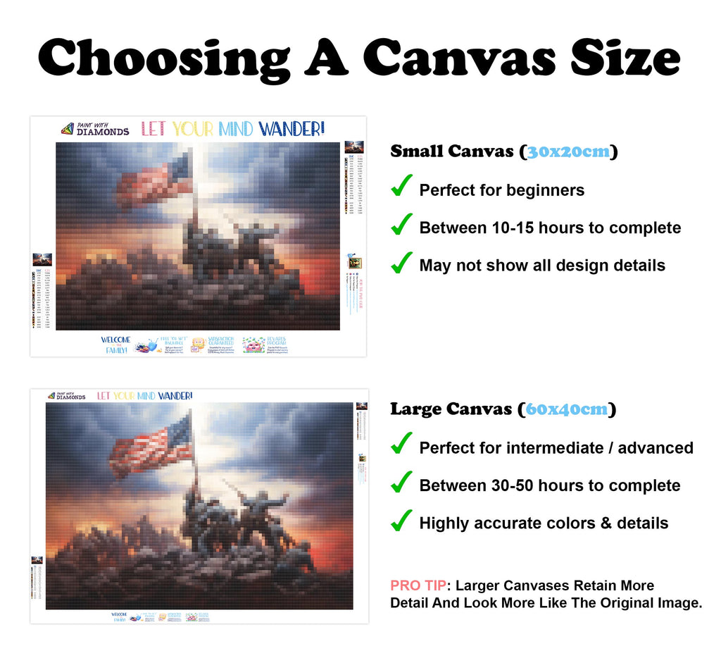 Escape into a world of vibrant colors and creative tranquility with the ‘Flags Of Our Fathers’ Diamond Painting Kit. This exclusive full-drill design by artist Caleb Smith is available only at Paint With Diamonds. Let your mind unwind as you piece together shimmering diamonds to create a beautiful masterpiece.