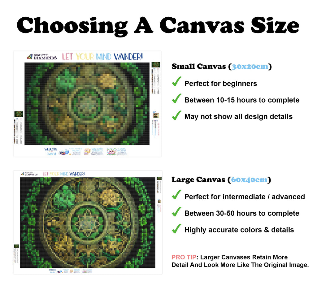 Large canvases show tiny details and all lettering, but may take up to 50+ hours to complete.