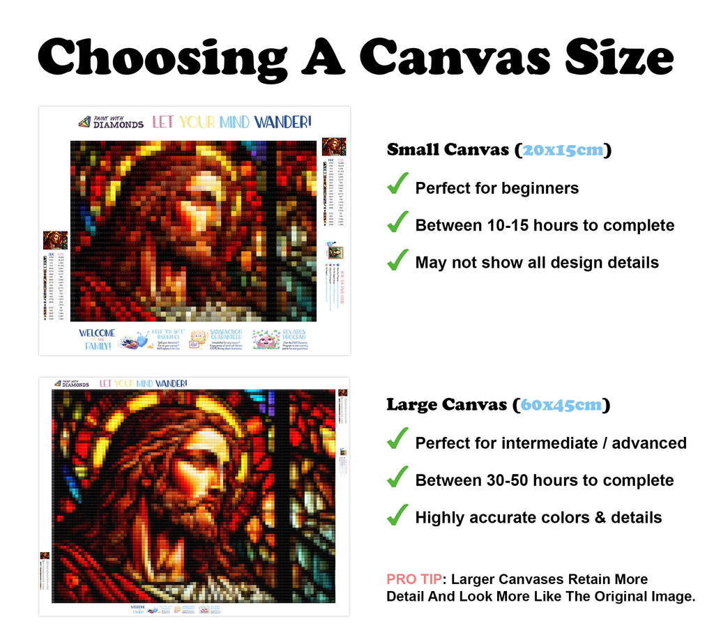 Large canvases show tiny details and all lettering, but may take up to 50+ hours to complete.