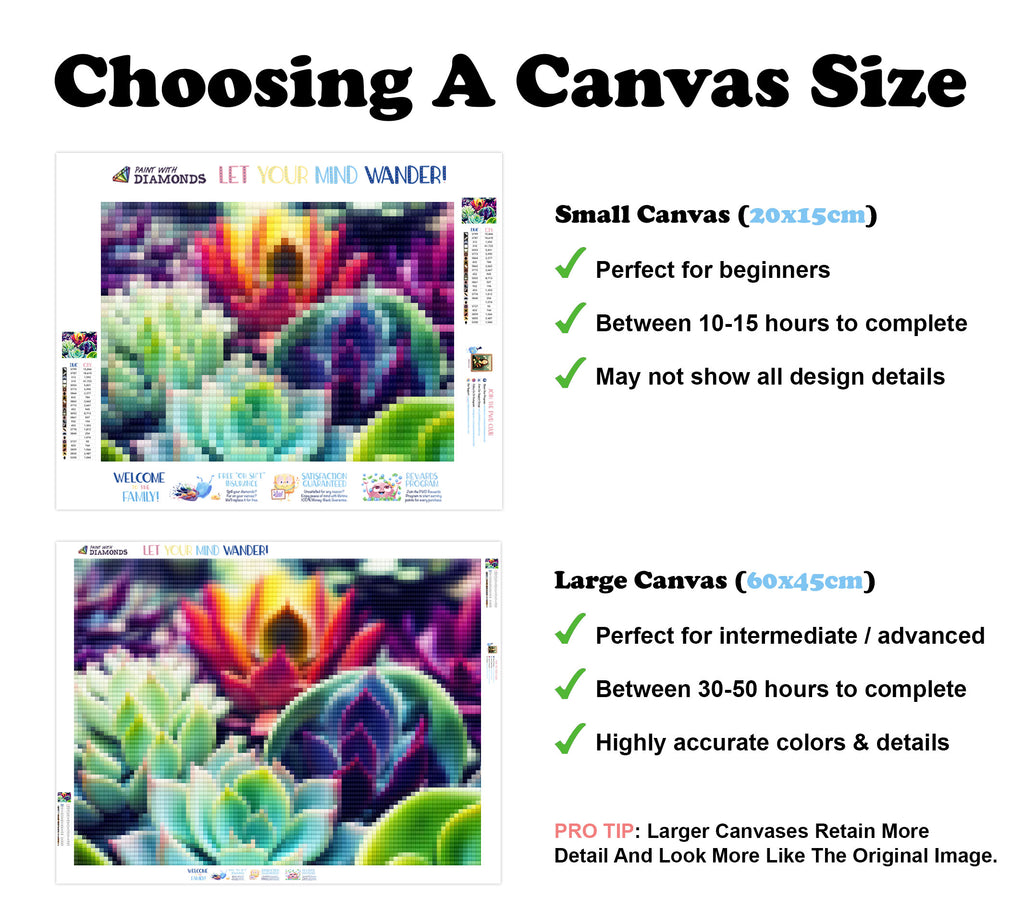 Escape into a world of vibrant colors and creative tranquility with the ‘Rainbow Succulents’ Diamond Painting Kit. This exclusive full-drill design by artist Caleb Smith is available only at Paint With Diamonds. Let your mind unwind as you piece together shimmering diamonds to create a beautiful masterpiece.
