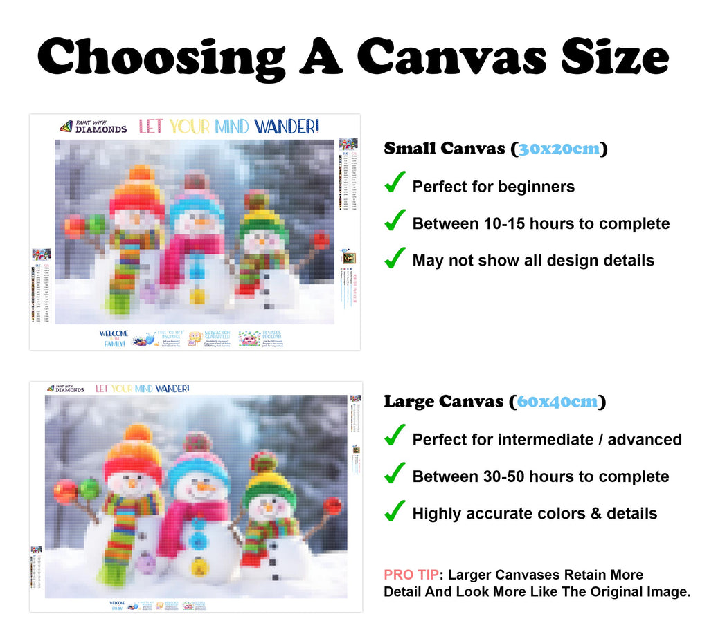 Escape into a world of vibrant colors and creative tranquility with the ‘Whimsical Snowman Family’ Diamond Painting Kit. This exclusive full-drill design by artist Caleb Smith is available only at Paint With Diamonds. Let your mind unwind as you piece together shimmering diamonds to create a beautiful masterpiece.