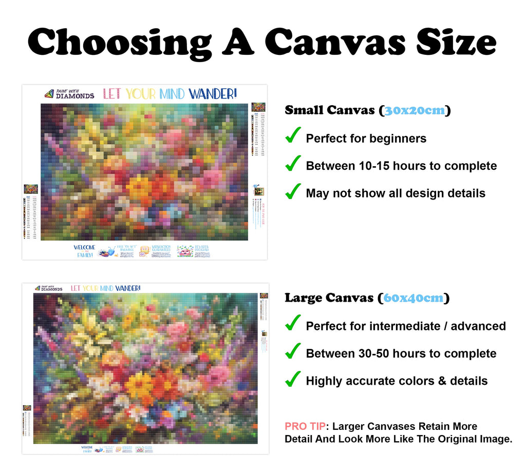 Premium Quality Diamond Painting Kit: Includes a velvety-soft adhesive canvas, eco-friendly shimmering resin diamonds, and a premium toolkit - everything you ned to get started on your next masterpiece.
