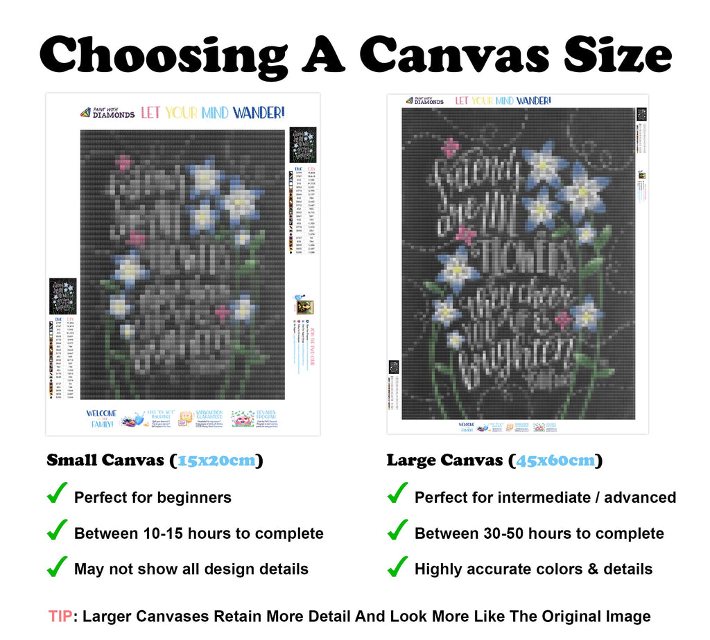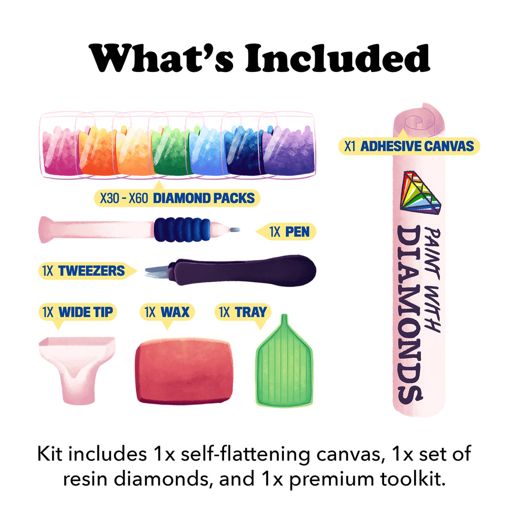 PREMIUM DIAMOND PAINTING KIT: Official Diamond Art kit includes 1x stay-flat adhesive canvas, 1x set of shimmering eco-friendly resin diamonds, and 1x premium toolkit. Diamonds cover the whole canvas.