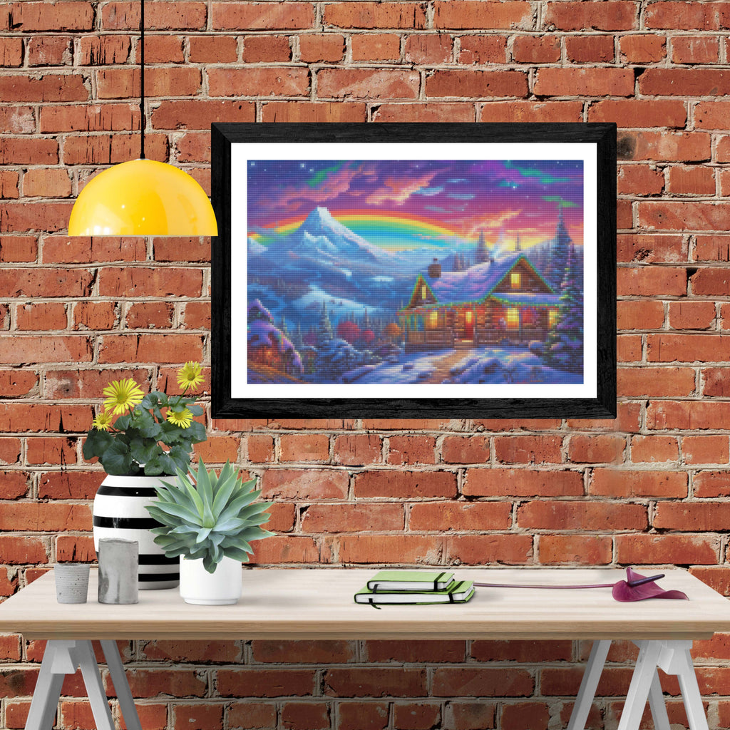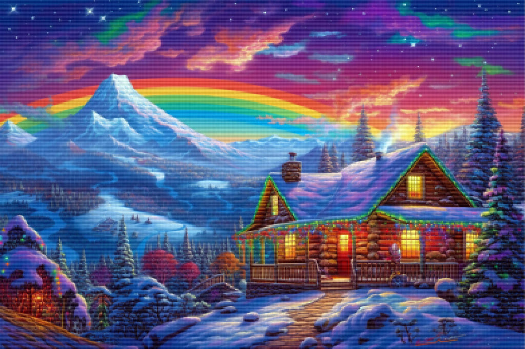 Escape into a world of vibrant colors and creative tranquility with the ‘Cabin Nestled In The Snowy Mountains’ Diamond Painting Kit. This exclusive full-drill design by artist Caleb Smith is available only at Paint With Diamonds. Let your mind unwind as you piece together shimmering diamonds to create a beautiful masterpiece.