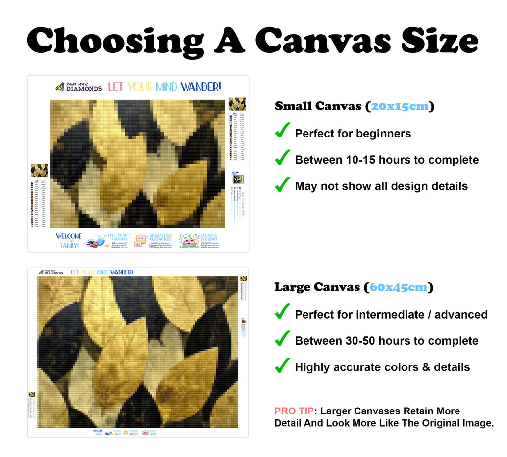 Escape into a world of vibrant colors and creative tranquility with the ‘Arrangement Of Golden Leaves’ Diamond Painting Kit. This exclusive full-drill design by artist Caleb Smith is available only at Paint With Diamonds. Let your mind unwind as you piece together shimmering diamonds to create a beautiful masterpiece.