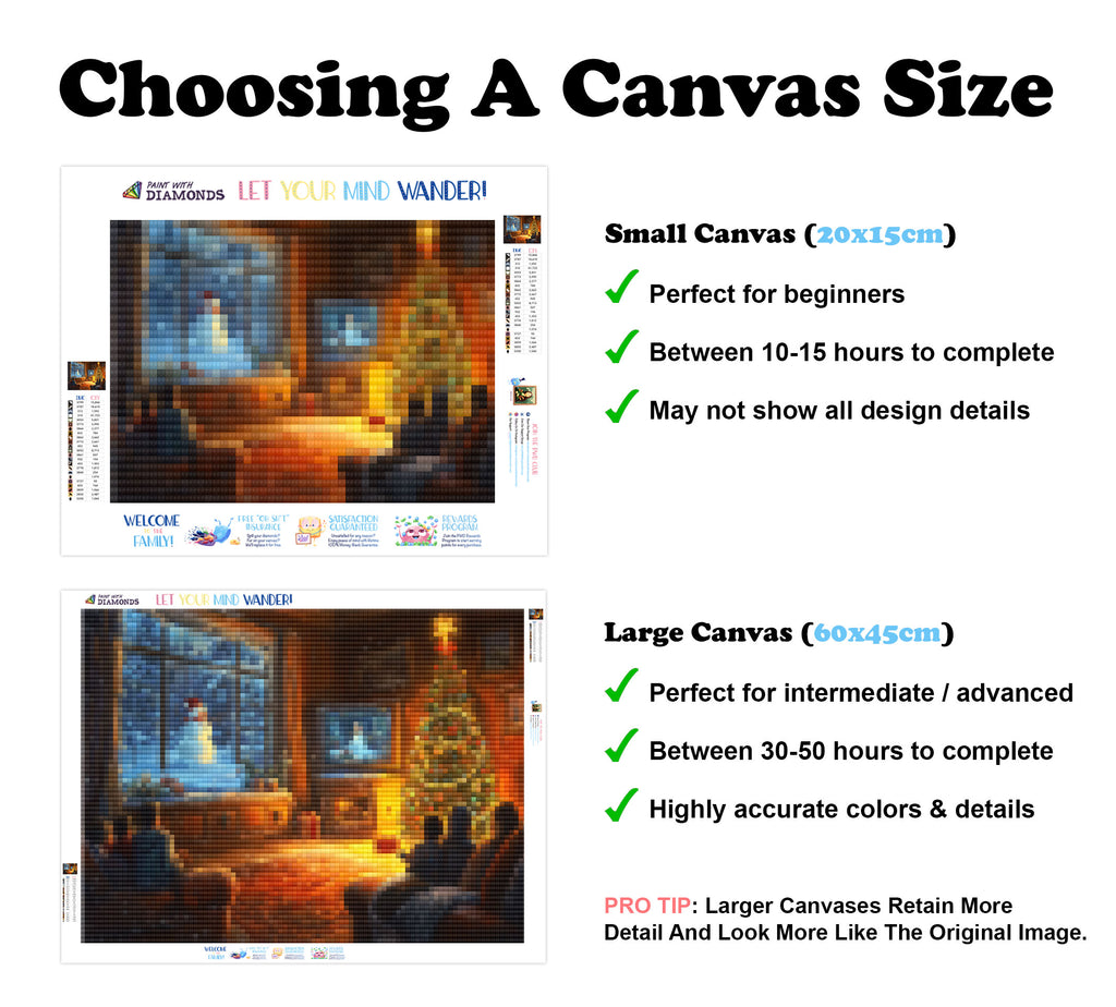 Large canvases show tiny details and all lettering, but may take up to 50+ hours to complete.