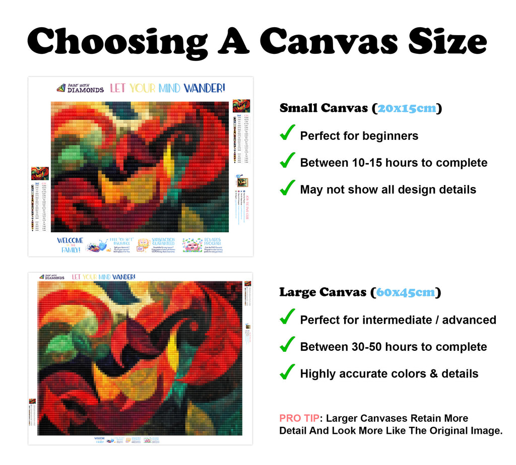 Premium Quality Diamond Painting Kit: Includes a velvety-soft adhesive canvas, eco-friendly shimmering resin diamonds, and a premium toolkit - everything you ned to get started on your next masterpiece.