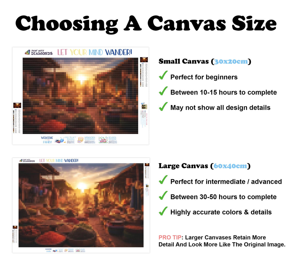 Medium canvases show significant detail but take between 20-30 hours to complete.