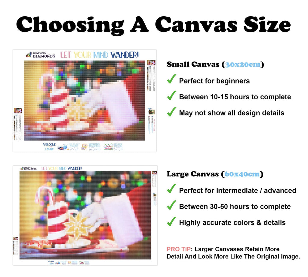 Dog walk on your canvas? Kids turn your diamonds into confetti? We'll replace your kit for free. Never cry over spilled diamonds.