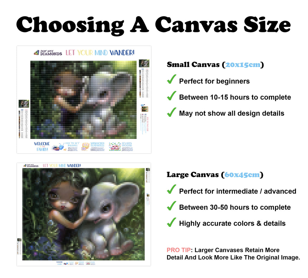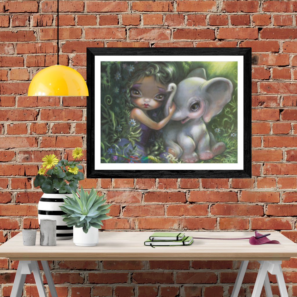 Escape into a world of vibrant colors and creative tranquility with the ‘Elephant Friend’ Diamond Painting Kit. This exclusive full-drill design by artist Jasmine Becket-Griffith is available only at Paint With Diamonds. Let your mind unwind as you piece together shimmering diamonds to create a beautiful masterpiece.