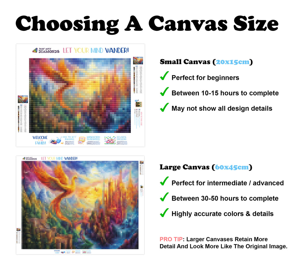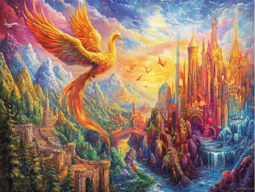 Escape into a world of vibrant colors and creative tranquility with the ‘Epic Fantasy Phoenix Flight’ Diamond Painting Kit. This exclusive full-drill design by artist Caleb Smith is available only at Paint With Diamonds. Let your mind unwind as you piece together shimmering diamonds to create a beautiful masterpiece.