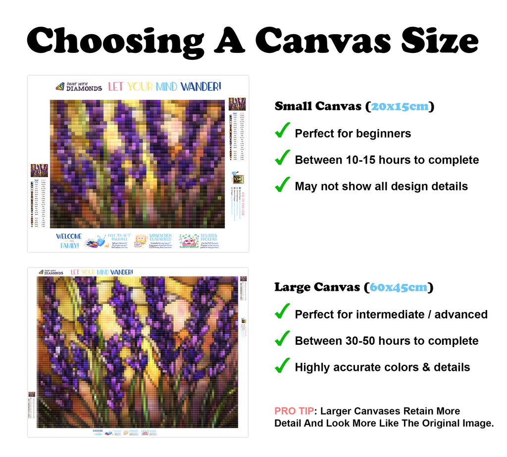 Escape into a world of vibrant colors and creative tranquility with the ‘Fragrant Lavender’ Diamond Painting Kit. This exclusive full-drill design by artist Caleb Smith is available only at Paint With Diamonds. Let your mind unwind as you piece together shimmering diamonds to create a beautiful masterpiece.