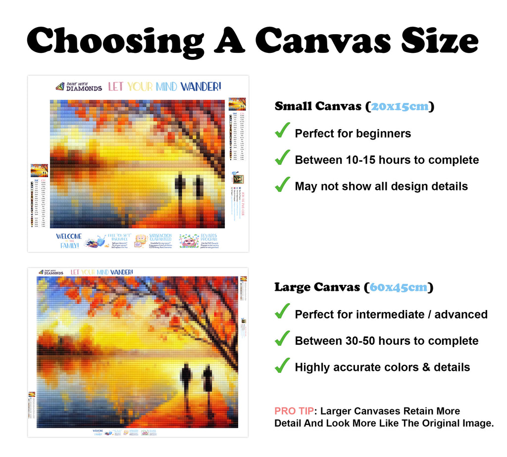 Large canvases show tiny details and all lettering, but may take up to 50+ hours to complete.
