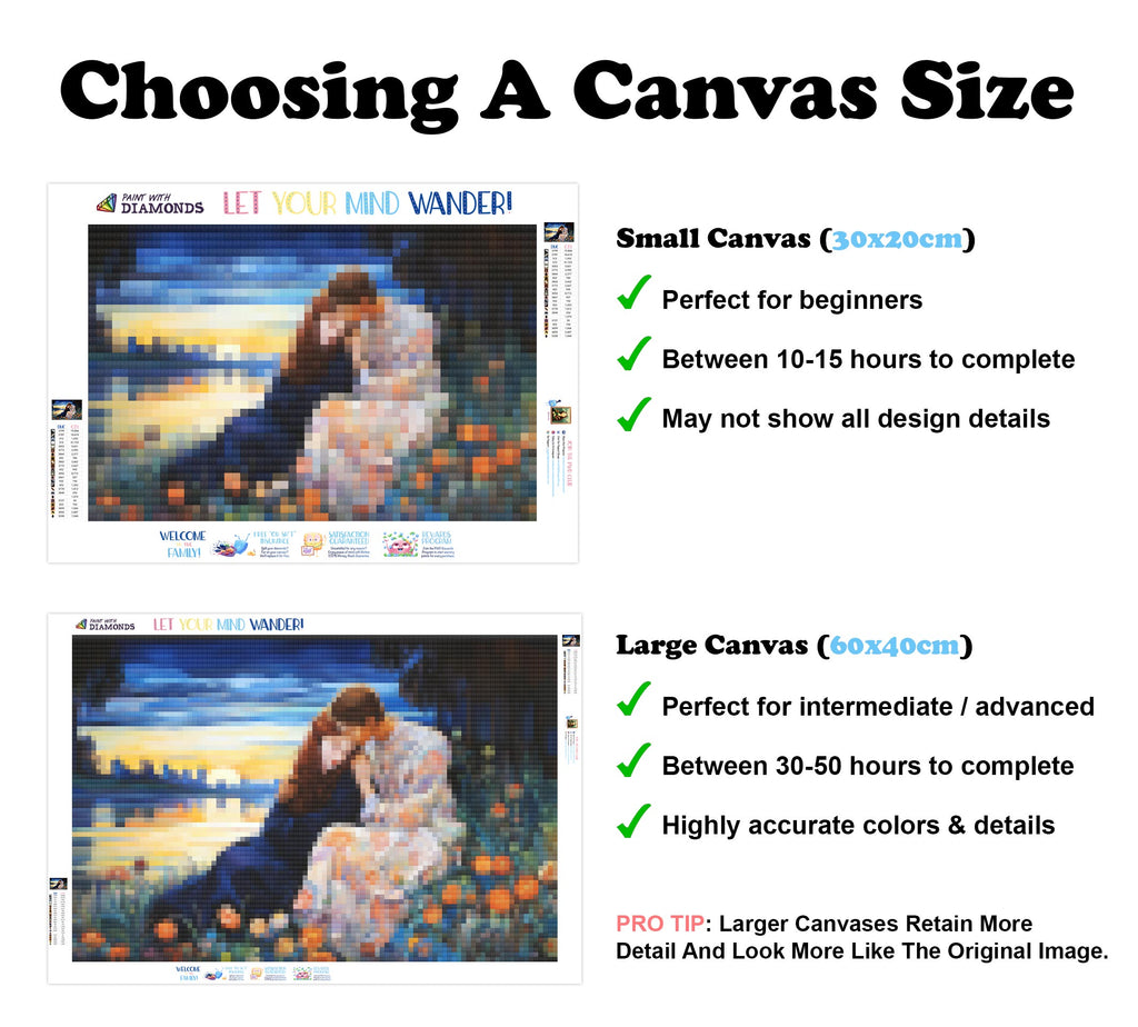 Escape into a world of vibrant colors and creative tranquility with the ‘Lovers By The Lovely Lake’ Diamond Painting Kit. This exclusive full-drill design by artist Caleb Smith is available only at Paint With Diamonds. Let your mind unwind as you piece together shimmering diamonds to create a beautiful masterpiece.