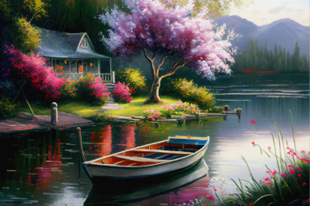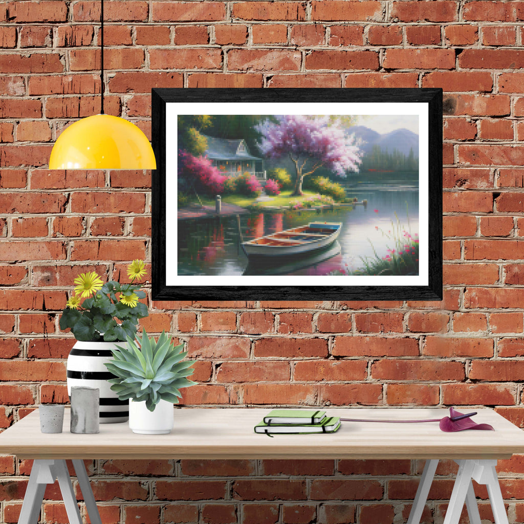 Ready to relax and create something beautiful? Add the 'Peaceful Lake With Dock And Rowboat Diamond Painting Kit to your cart today and start your journey to creative calm.