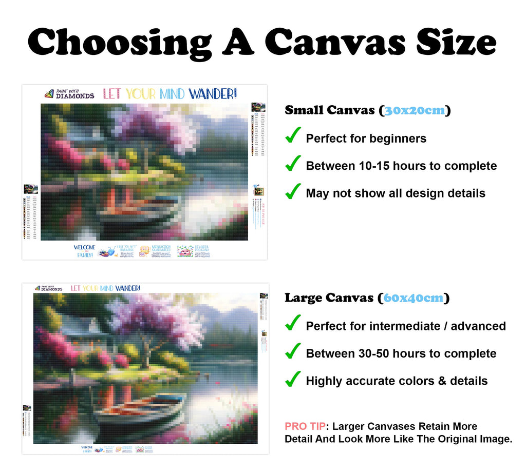 Escape into a world of vibrant colors and creative tranquility with the ‘Peaceful Lake With Dock And Rowboat’ Diamond Painting Kit. This exclusive full-drill design by artist Caleb Smith is available only at Paint With Diamonds. Let your mind unwind as you piece together shimmering diamonds to create a beautiful masterpiece.