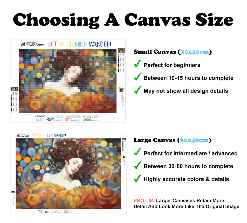 Premium Quality Diamond Painting Kit: Includes a velvety-soft adhesive canvas, eco-friendly shimmering resin diamonds, and a premium toolkit - everything you ned to get started on your next masterpiece.