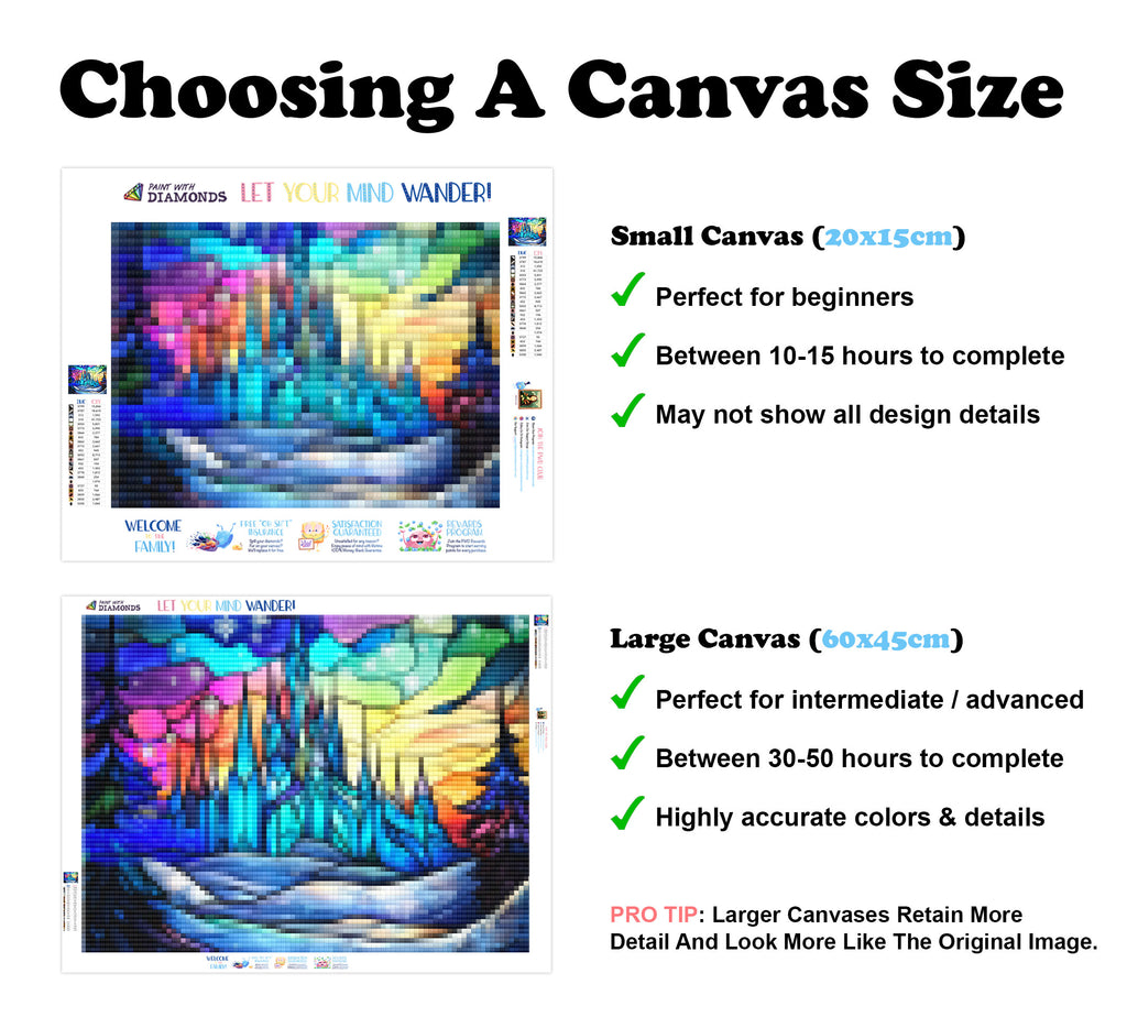 Escape into a world of vibrant colors and creative tranquility with the ‘Shimmering Ice Formations’ Diamond Painting Kit. This exclusive full-drill design by artist Caleb Smith is available only at Paint With Diamonds. Let your mind unwind as you piece together shimmering diamonds to create a beautiful masterpiece.