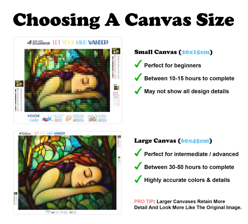 Escape into a world of vibrant colors and creative tranquility with the ‘Sleeping Enchantment’ Diamond Painting Kit. This exclusive full-drill design by artist Caleb Smith is available only at Paint With Diamonds. Let your mind unwind as you piece together shimmering diamonds to create a beautiful masterpiece.