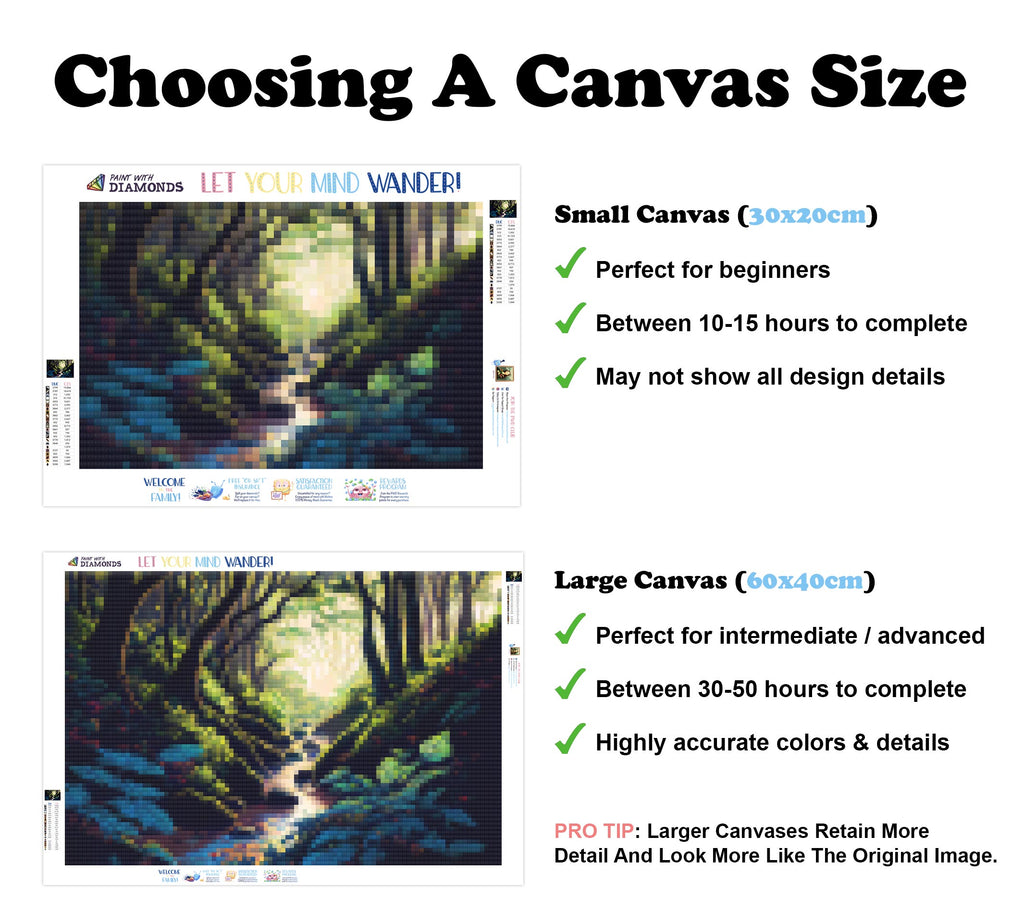 Premium Quality Diamond Painting Kit: Includes a velvety-soft adhesive canvas, eco-friendly shimmering resin diamonds, and a premium toolkit - everything you ned to get started on your next masterpiece.