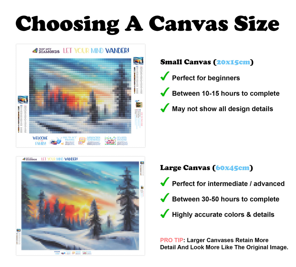 Premium Quality Diamond Painting Kit: Includes a velvety-soft adhesive canvas, eco-friendly shimmering resin diamonds, and a premium toolkit - everything you ned to get started on your next masterpiece.