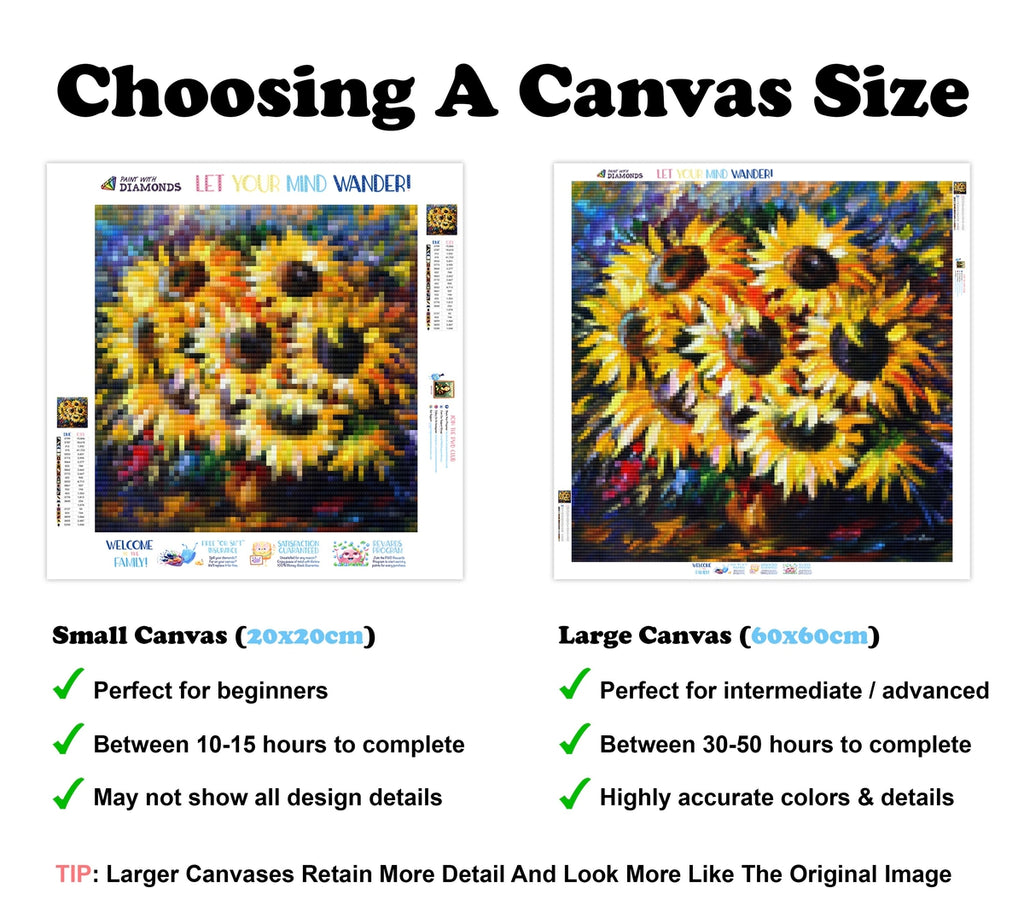 Relax, unwind, and create Diamond Art! "Sunny Bouquet" by artist Leonid Afremov is now available exclusively at Paint With Diamonds® as a full-drill Diamond Painting Kit in your choice of Round or Square diamonds.
