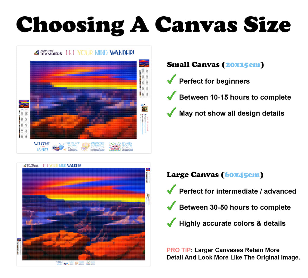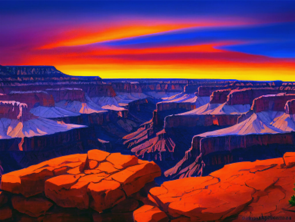 Escape into a world of vibrant colors and creative tranquility with the ‘Sunset Over The Grand Canyon’ Diamond Painting Kit. This exclusive full-drill design by artist Caleb Smith is available only at Paint With Diamonds. Let your mind unwind as you piece together shimmering diamonds to create a beautiful masterpiece.
