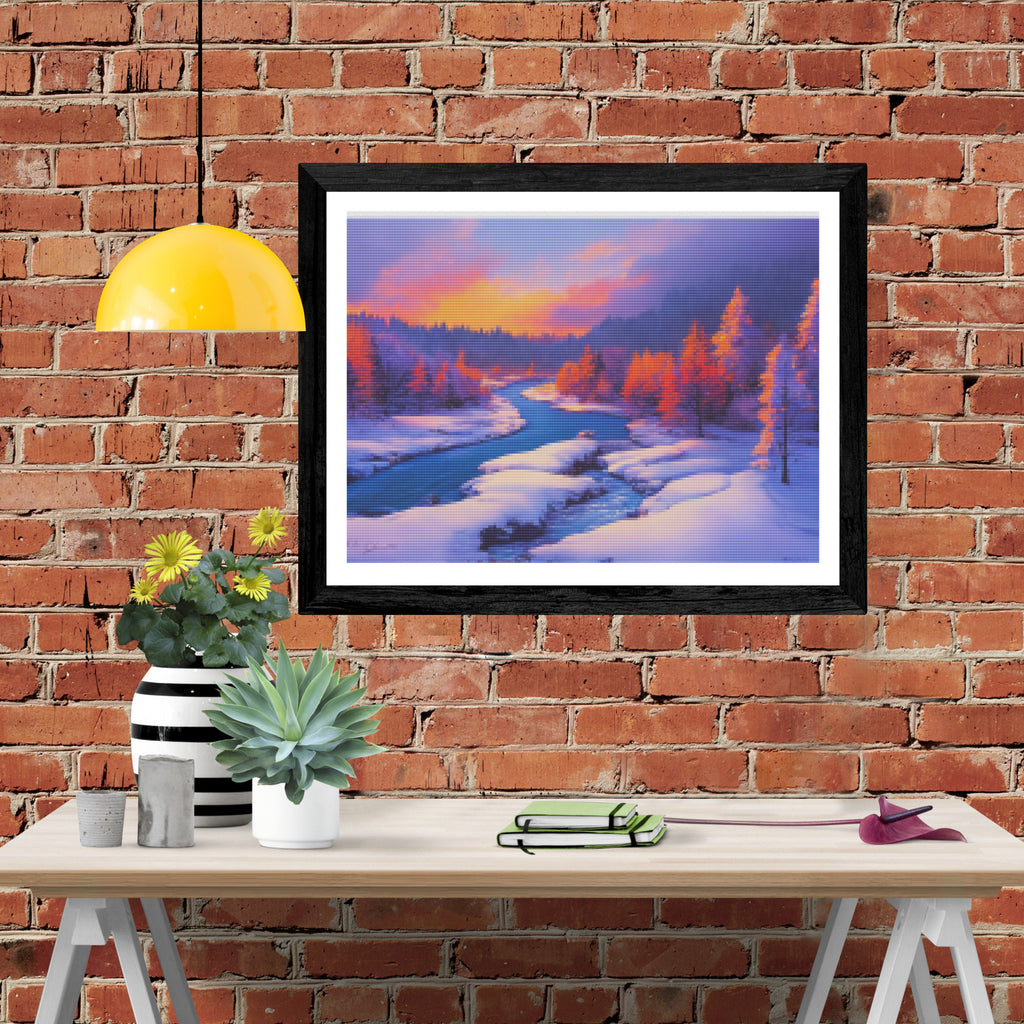 Escape into a world of vibrant colors and creative tranquility with the ‘Tangerine Winter Sunset’ Diamond Painting Kit. This exclusive full-drill design by artist Caleb Smith is available only at Paint With Diamonds. Let your mind unwind as you piece together shimmering diamonds to create a beautiful masterpiece.