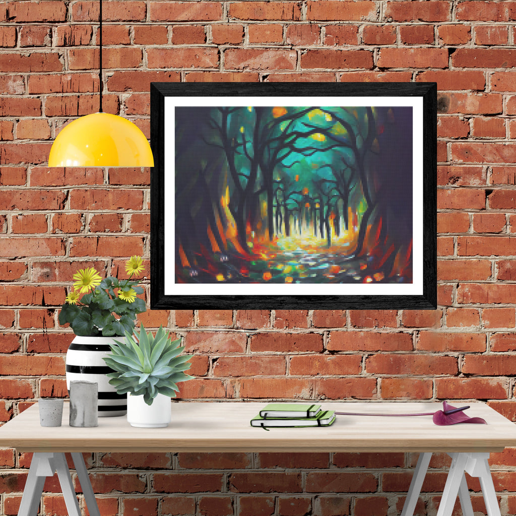 Escape into a world of vibrant colors and creative tranquility with the ‘Through The Scary Forest’ Diamond Painting Kit. This exclusive full-drill design by artist Caleb Smith is available only at Paint With Diamonds. Let your mind unwind as you piece together shimmering diamonds to create a beautiful masterpiece.