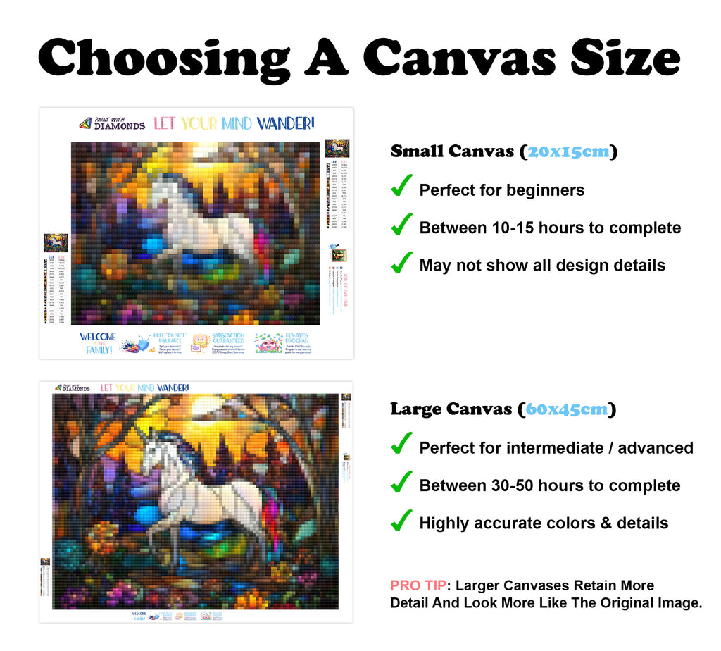 Hand-Poured Canvas Adhesive: Guaranteed to keep your diamonds securely in place for life, so your artwork will last for years to come.