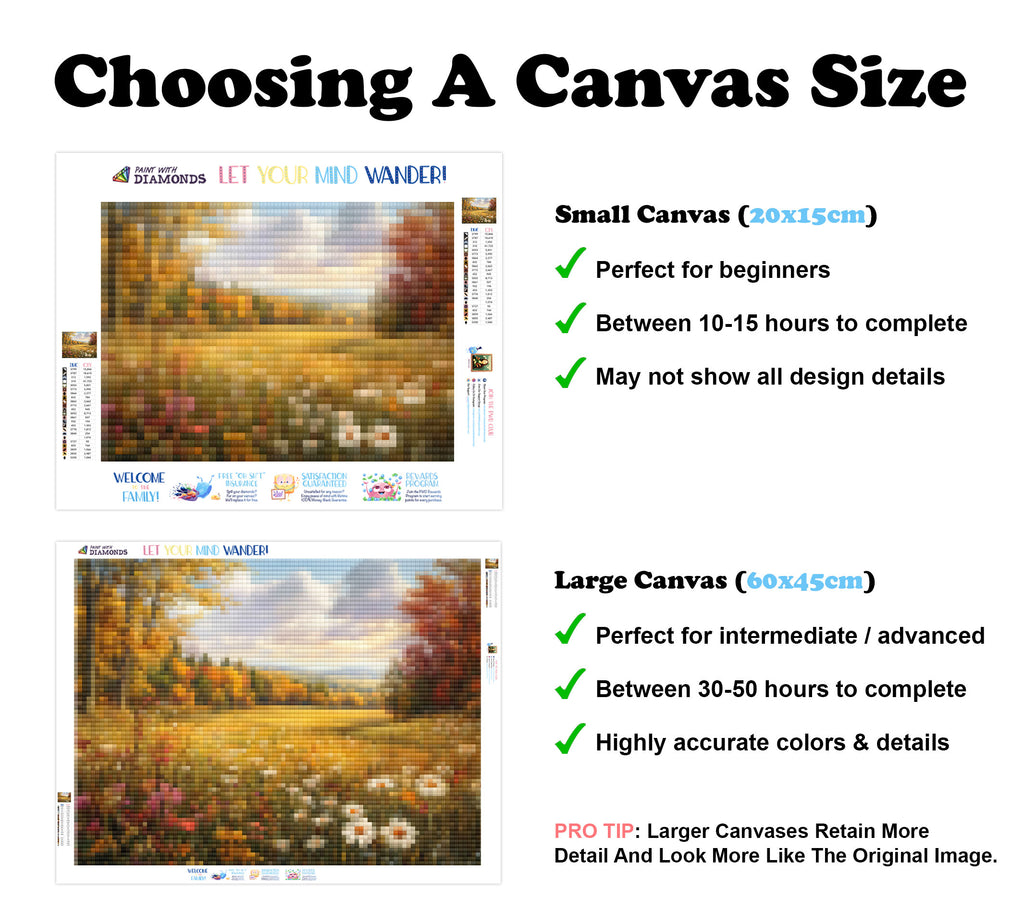 Escape into a world of vibrant colors and creative tranquility with the ‘Wide-Open Autumn Meadow’ Diamond Painting Kit. This exclusive full-drill design by artist Caleb Smith is available only at Paint With Diamonds. Let your mind unwind as you piece together shimmering diamonds to create a beautiful masterpiece.