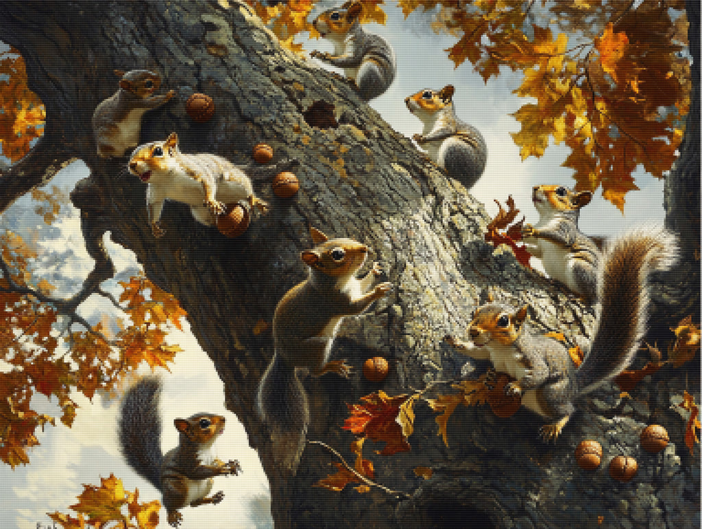 Playful Squirrels in an Oak Tree