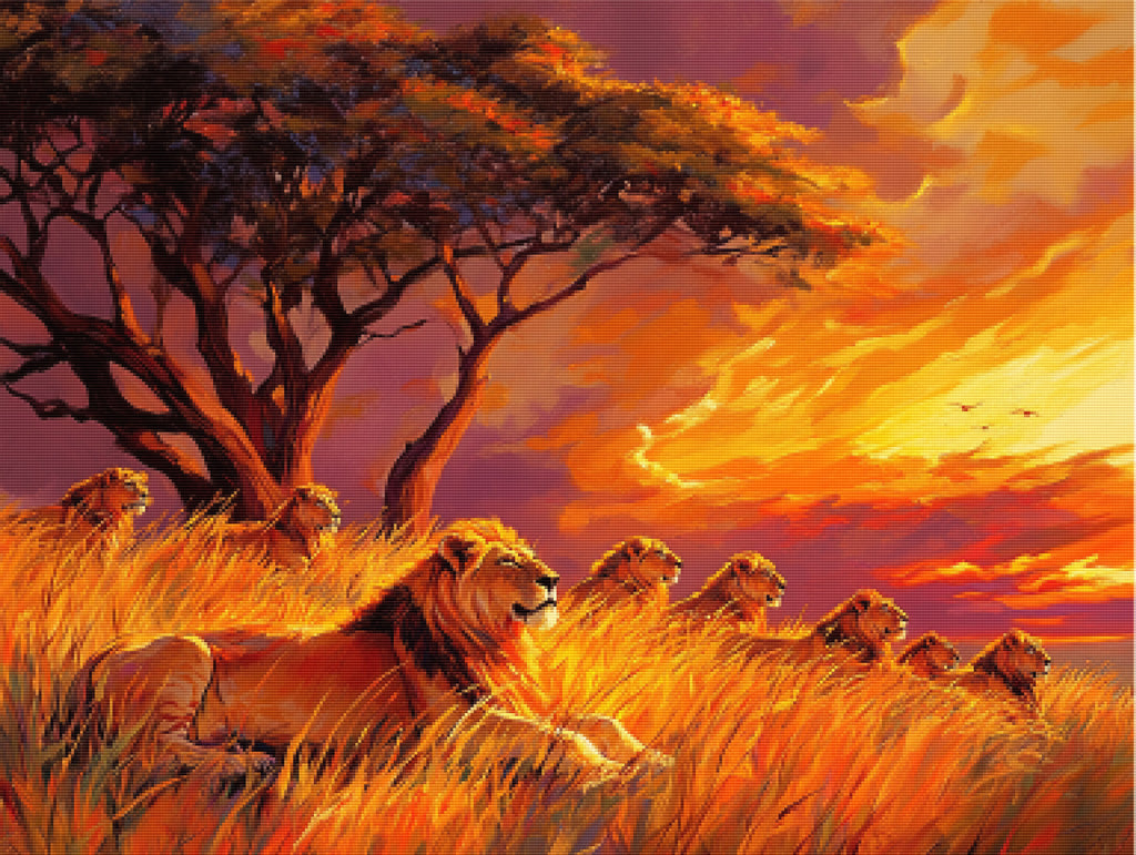 Regal Lions in a Savannah Sunset