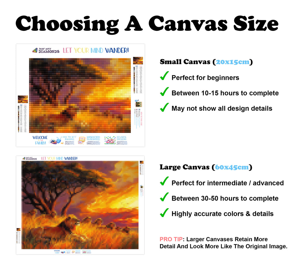Premium Quality Diamond Painting Kit: Includes a velvety-soft adhesive canvas, eco-friendly shimmering resin diamonds, and a premium toolkit - everything you ned to get started on your next masterpiece.