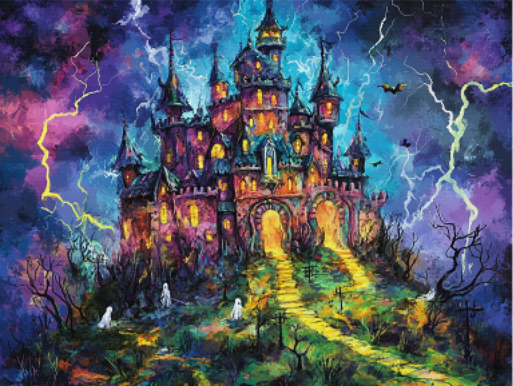 Escape into a world of vibrant colors and creative tranquility with the ‘Cursed Castle on the Hill’ Diamond Painting Kit. This exclusive full-drill design by artist Caleb Smith is available only at Paint With Diamonds. Let your mind unwind as you piece together shimmering diamonds to create a beautiful masterpiece.