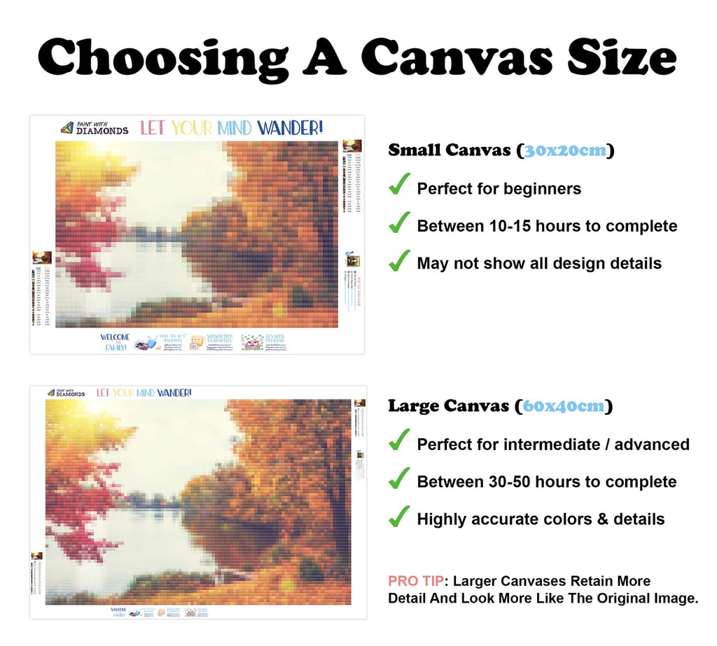 PREMIUM DIAMOND PAINTING KIT: Official Diamond Art kit includes 1x stay-flat adhesive canvas, 1x set of shimmering eco-friendly resin diamonds, and 1x premium toolkit. Diamonds cover the whole canvas.