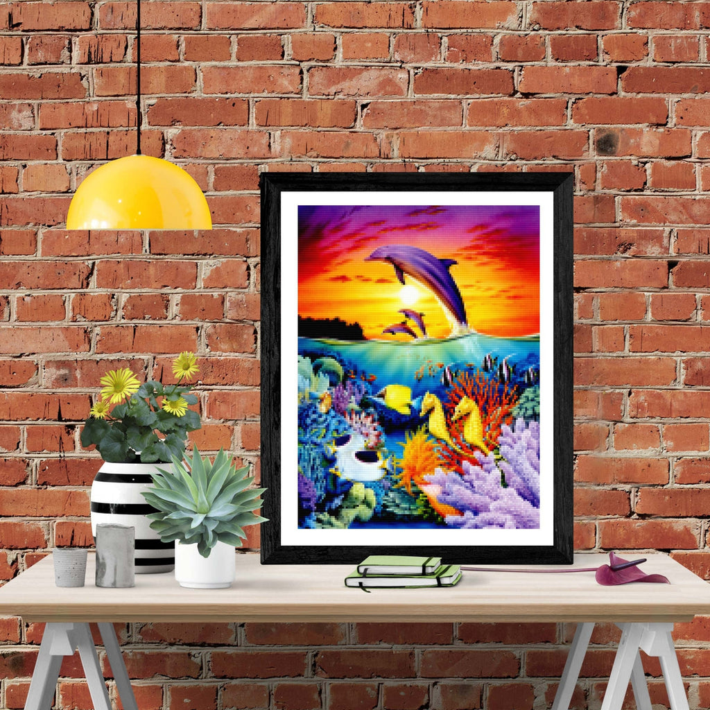 Relax, unwind, and create Diamond Art! "Seahorse Dolphins" by artist Robin Koni is now available exclusively at Paint With Diamonds® as a full-drill Diamond Painting Kit in your choice of Round or Square diamonds.