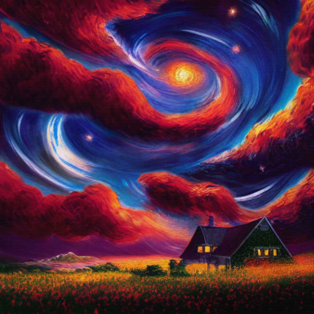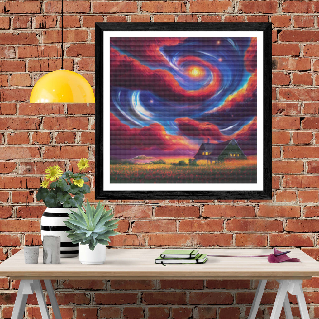 Escape into a world of vibrant colors and creative tranquility with the ‘Cosmic Swirl On The Farm’ Diamond Painting Kit. This exclusive full-drill design by artist Caleb Smith is available only at Paint With Diamonds. Let your mind unwind as you piece together shimmering diamonds to create a beautiful masterpiece.