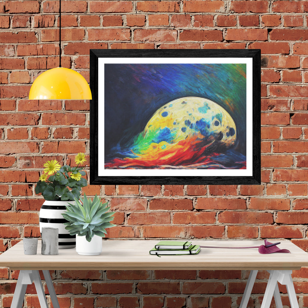 Escape into a world of vibrant colors and creative tranquility with the ‘Dark Side Of The Rainbow Moon’ Diamond Painting Kit. This exclusive full-drill design by artist Caleb Smith is available only at Paint With Diamonds. Let your mind unwind as you piece together shimmering diamonds to create a beautiful masterpiece.