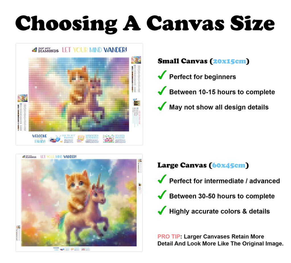 Escape into a world of vibrant colors and creative tranquility with the ‘Kitten and Unicorn Fantasy’ Diamond Painting Kit. This exclusive full-drill design by artist Kira Hoshino is available only at Paint With Diamonds. Let your mind unwind as you piece together shimmering diamonds to create a beautiful masterpiece.