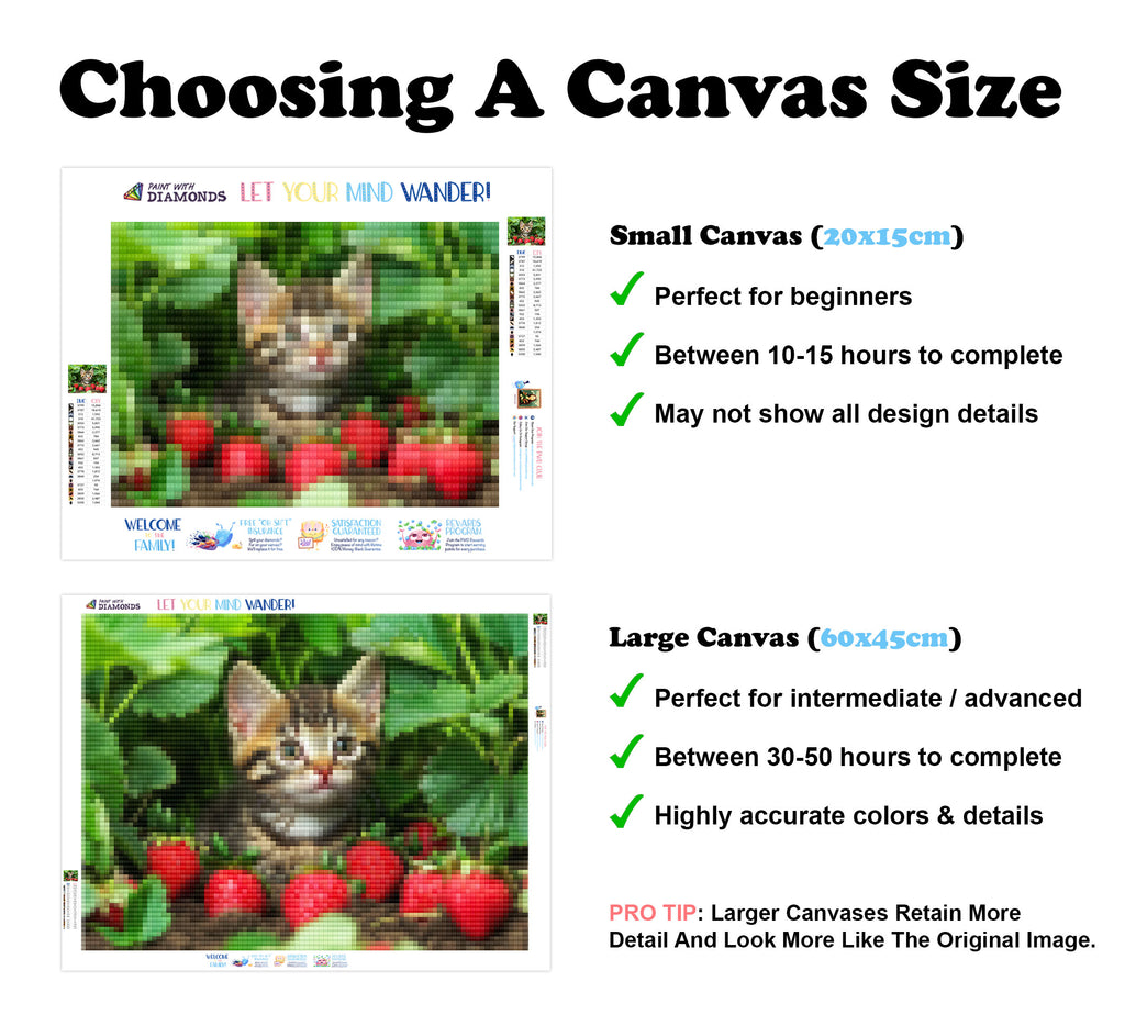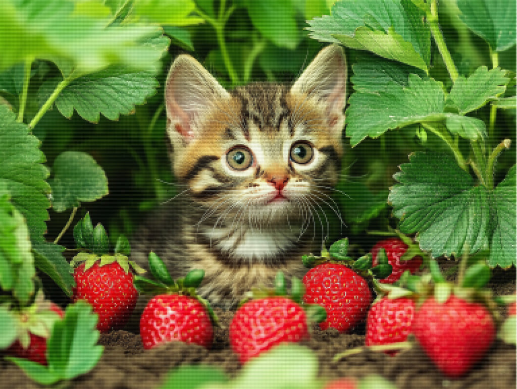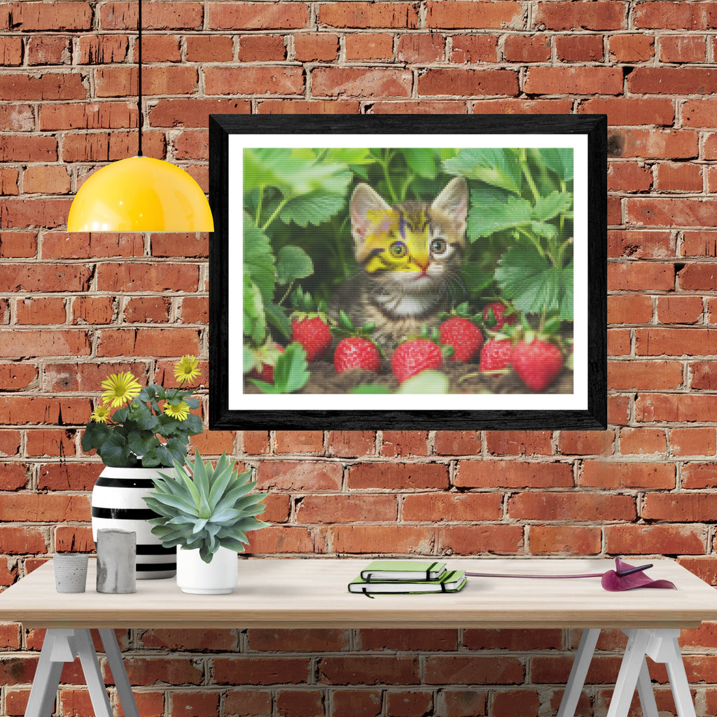 Ready to relax and create something beautiful? Add the Kitten in a Strawberry Field Diamond Painting Kit to your cart today and start your journey to creative calm.