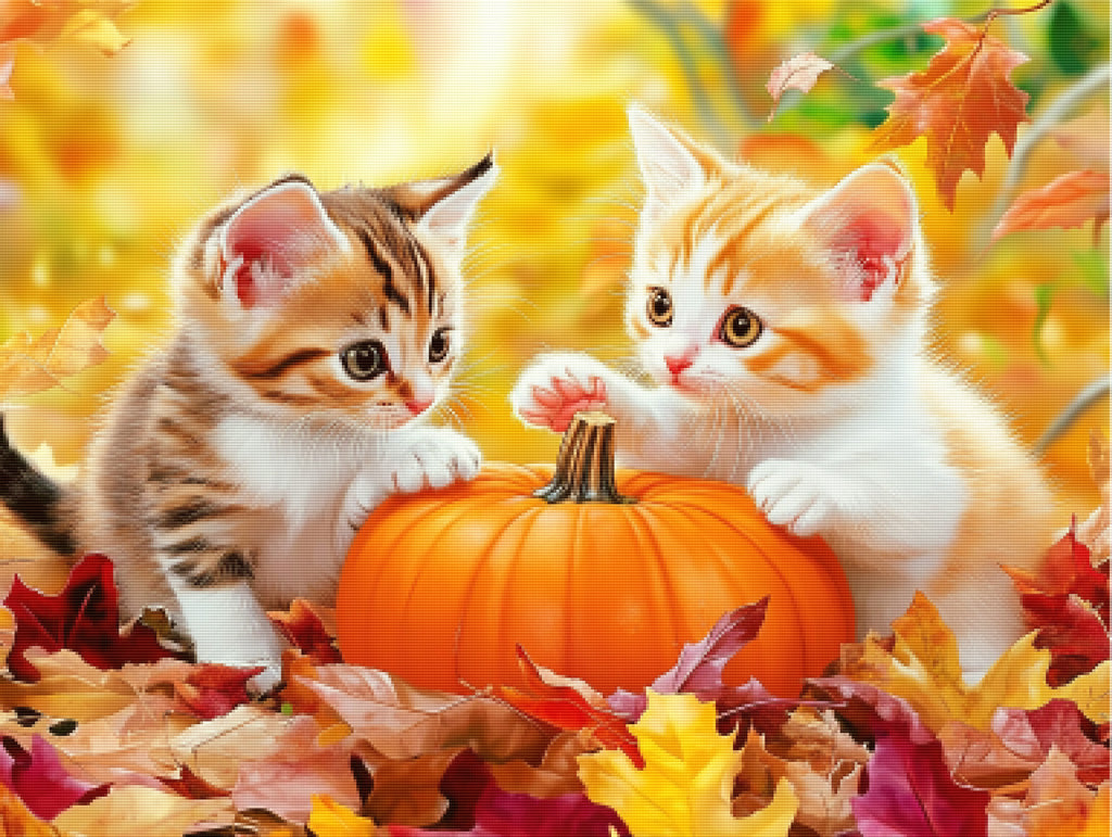 Ready to relax and create something beautiful? Add the Kittens in a Pumpkin Patch Diamond Painting Kit to your cart today and start your journey to creative calm.